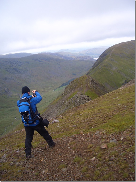 Descending Hart Crag it was here I lost Tim for a while when my mobile phone rang, most people know where I am so I’m thinking the worst ‘who’s this’ there must be a problem, It turned out it was my older brother Andy asking me was I in work, as soon as I answered he got his answer with the wind blowing a holey down the phone, we had a quick chat before I made some time up catching up with Tim. |