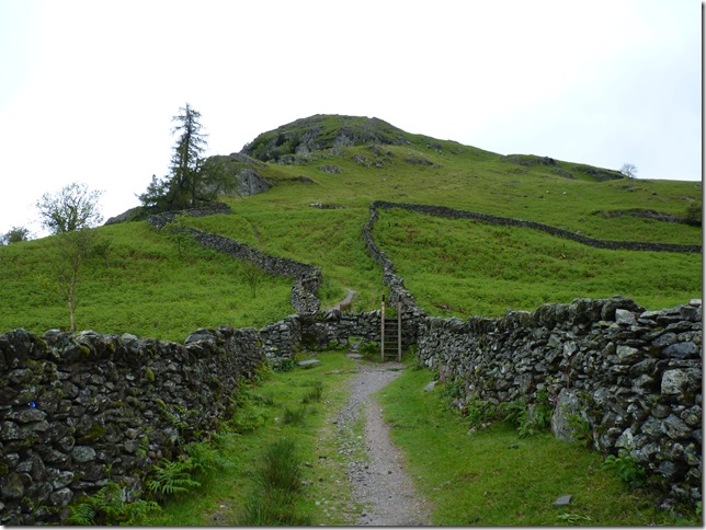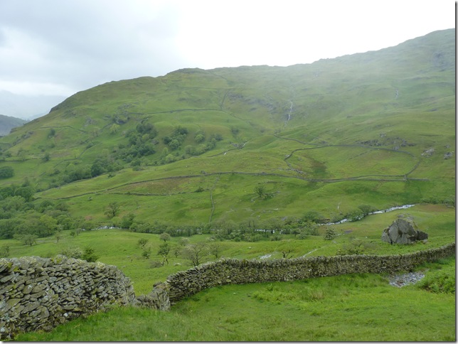 With this is mind we cut short our route & made a right following this stone wall, more or less adjacent to Nab Scar in this picture, it was a shorter route back to Rydal however this wasn’t going to stop us getting any wetter. |