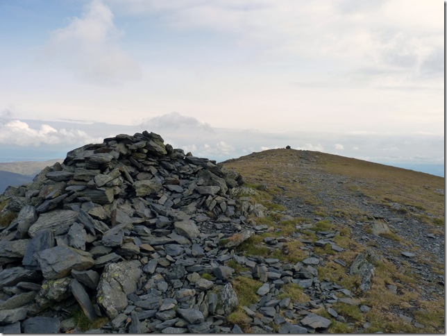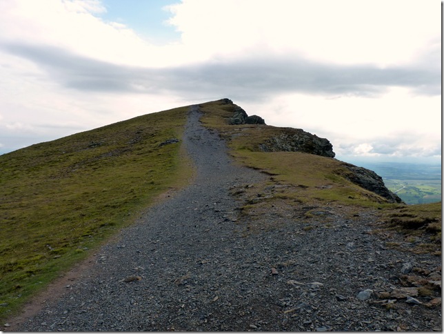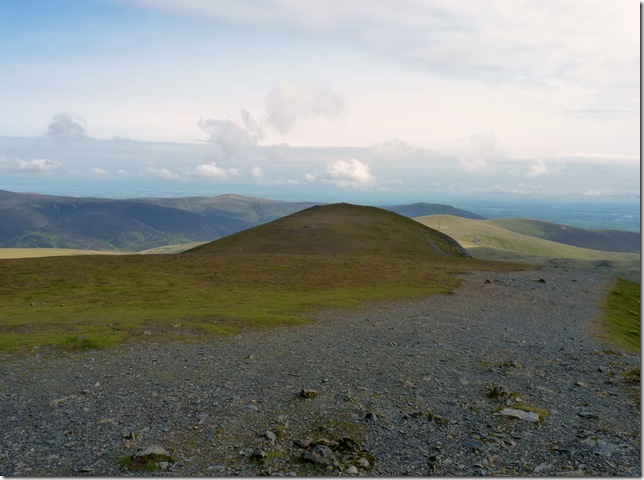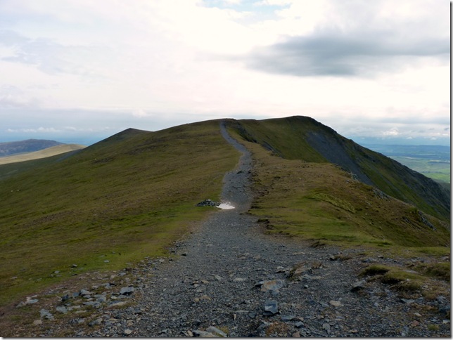Ahead & towards Hall’s Fell summit (The main summit of Blencathra to the right) the wind is blowing straight through my beanie & I’m now thinking of donning gloves, the forecast was ‘freezing above summits’ and they haven’t got that bit wrong although I’m quite adamant I will not phase & don the jacket, its June for goodness sake is all I kept muttering to oneself. I take a look behind me & spot the first two people of the day, stopping to put there jackets on, me I’m as stubborn as an owd mule. |
