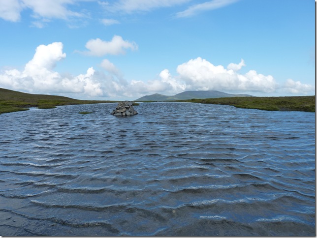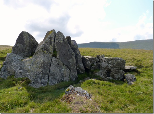 Mungrisdale Common summit cairn with the Skiddaw massif in the background. I would of been incredibly lucky if I didn’t manage to get my socks & boots wet while walking along the drenched moss to get here, it was here I was cursing myself for not water proofing the boots for a long time, well from here it was another landmark I wanted to visit, marked ‘Cloven Stone’ a distinctive feature on an otherwise bleak landscape. |