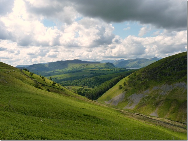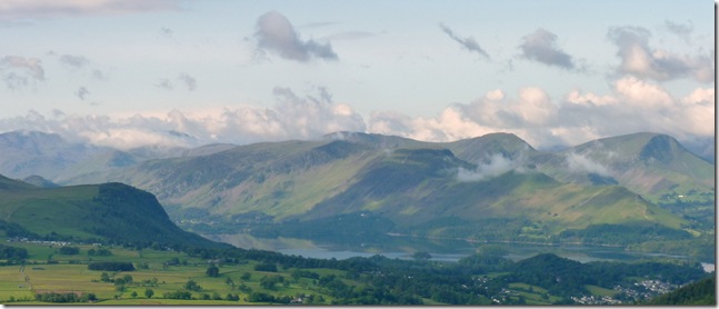 From the steep track you are greeted by this fine view of the north western fells & Derwent Water. |