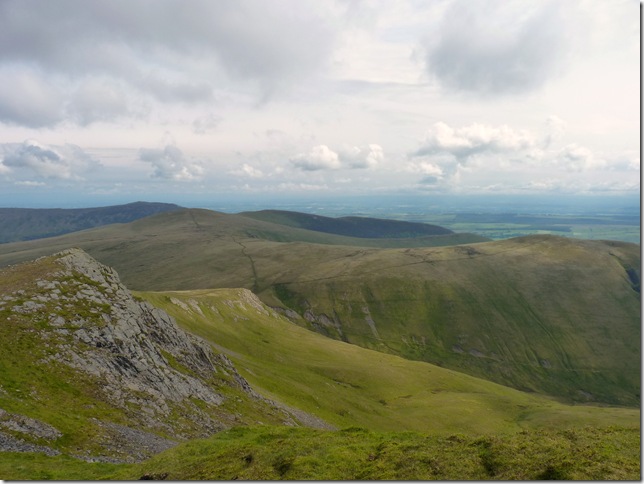 Looking over the crest of Atkinson Pike with Bannerdale Crags on the right & Bowscale Fell taking centre. |