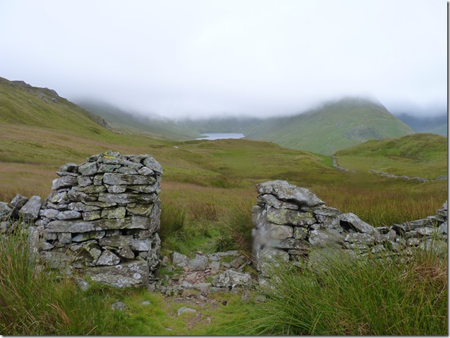 Through the wall & a cloud topped Grey Crag (R) Hayeswater & The Knott (L) |