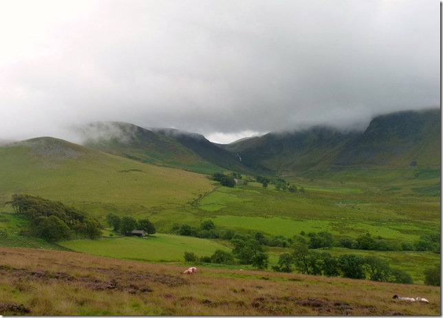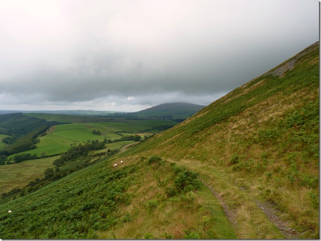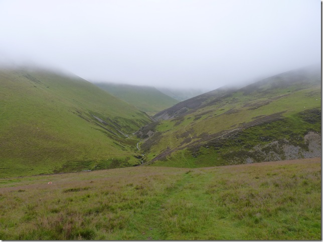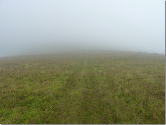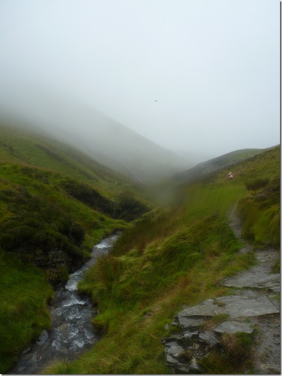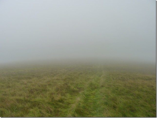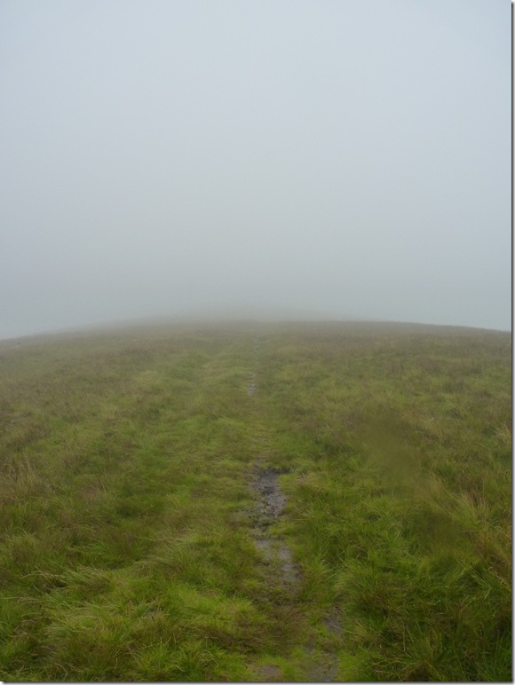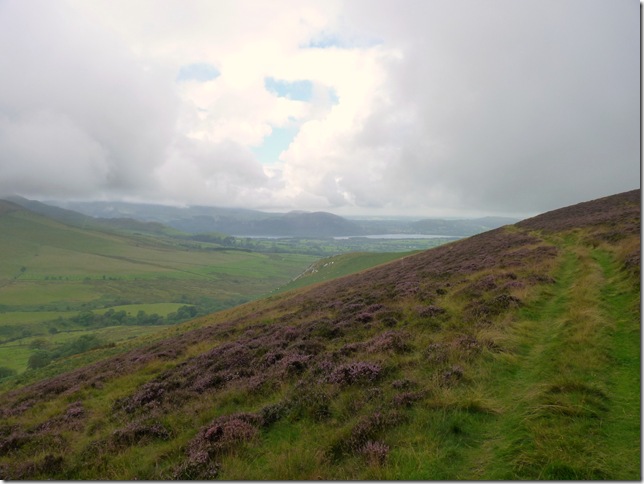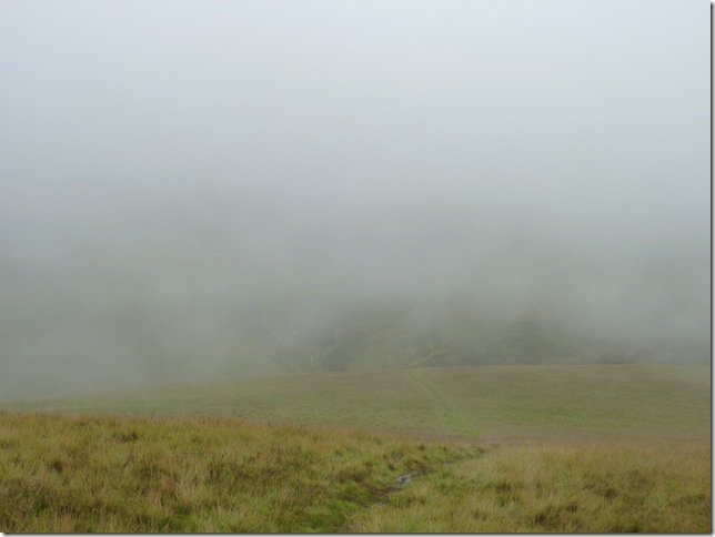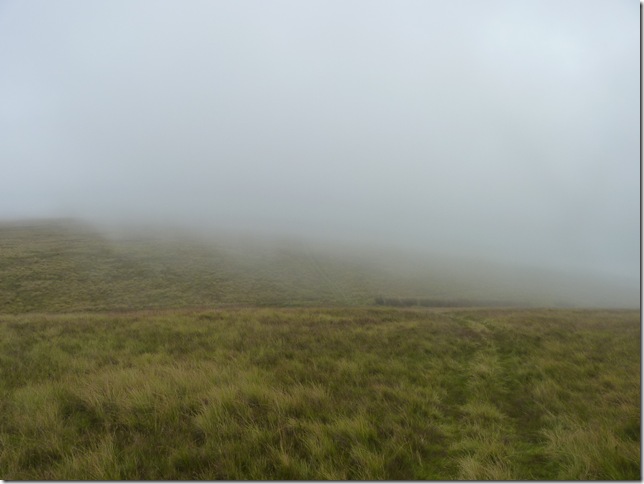 From the Cumbrian Way I could see to my right the grassy slopes of Longlands Fell to my right, it was a little worrying however that I couldn’t see anything above the cloud line which was lying really low (at this point around about 330 Metres) with not much wind about I could see this low cloud was going no-where fast. |