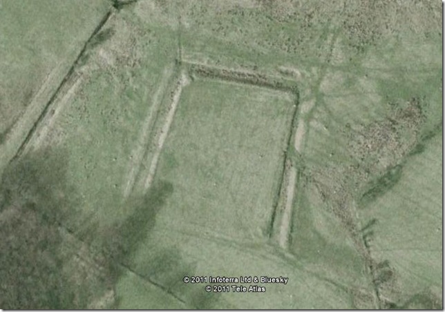 What you are looking at is a medieval moat marked on the map as Uldale Common, the moat you see here according to English Heritage was the site of a much older Over Water Hall surrounded by what is now a dry Moat, it is very difficult to see so here is a picture I copied from Google Earth. |