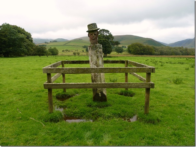 After leaving the Moat I pass through a gate seen somewhere in the bottom left hand corner of this picture when I came across this odd looking what can only be described as a man wearing a bowler hat perched upon what looks like a tree stump or gate post, now I have spent quite a bit of time trawling the internet & various books but have come up with absolutely nothing, so If you do know who & what this is please contact me or leave a comment |