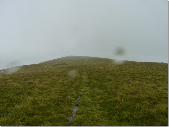 And sadly for you & me this was my visibility for the next few hours, with hardly any pause gap at all from the downpour that was thrust upon me I carried on with my head down briefly lifting every 15/20 steps to try & find a fix on anything but all I found was the sight of drenched sheep looking at me thinking what & why are you here? |