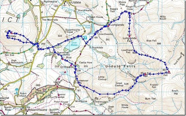 Looking over towards Over Water from my ascent up Binsey, the fells you can see in the background are my morning’s work & they look quite away from here, with Longlands Fell on the left Great Sca Fell & Meal Fell are cloud topped but I have a feeling they wont be for long. |
