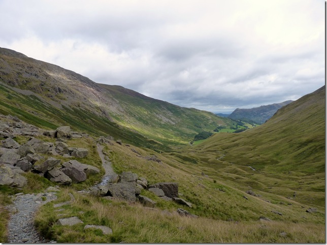 Time to head down a little & make my way over to the aptly named ‘Trough’ the Trough is the name given to the head of the Glenamara Park valley seen here coming in from the right of this picture. To the left of the picture is Dove Crag & Hart Crag, the pointy peak you see is Gavel Pike & hidden behind the fellside on the right (Black Crag, my route towards Birks) is the summit of St Sunday Crag, its all very confusing from this angle & I must admit it took me a minute to get my bearings. |