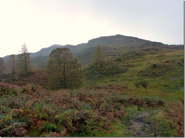 Looking back up towards Black Fell (the small pointy peak centre right background) from my descent. |
