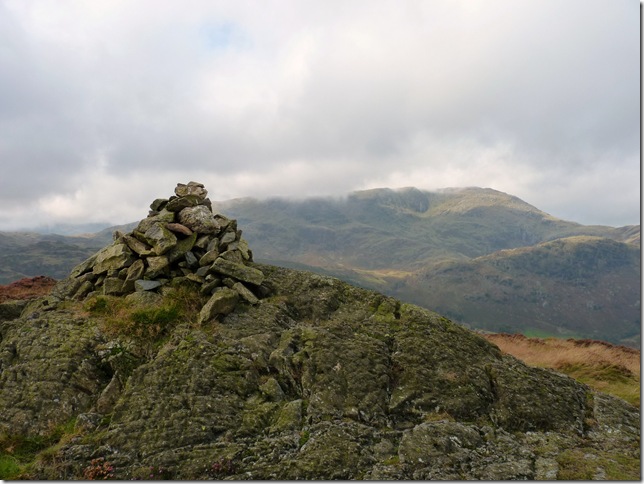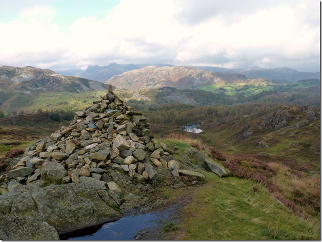 This, a second substantial Cairn found close by the summit with views over towards Holme Fell Tarn, Lingmoor Fell & the Langdales. |