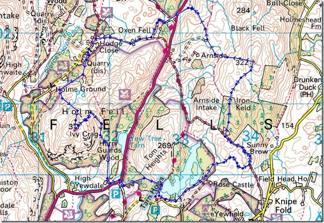 Passing through the Iron Keld plantations towards Black Crag, the paths here are really well sign posted for such a small fell & I’m guessing that’s to do with the amount of visitors Tarn Hows gets. The map may show trees along here but sadly they are long gone. |