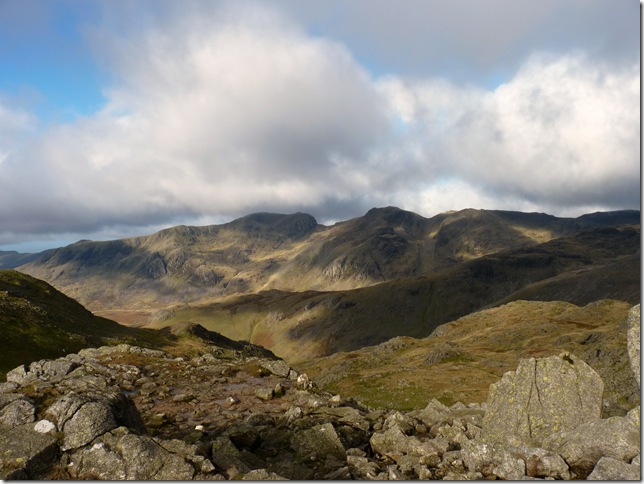 Bow Fell, Bowfell Links with a glimpse of Three Tarns from my ascent on the Crinkles. |
