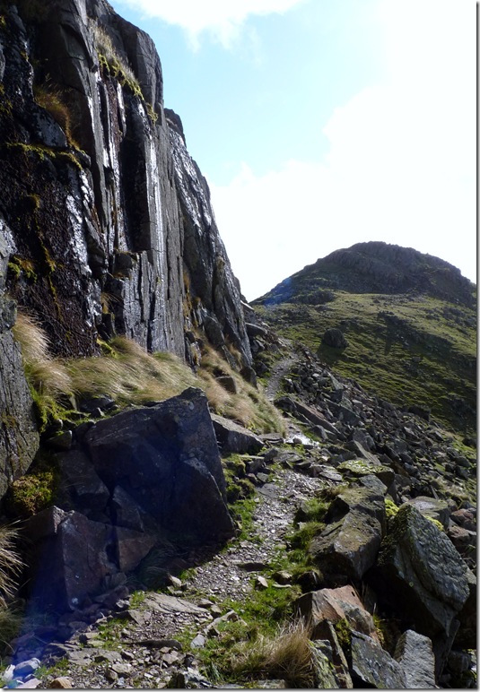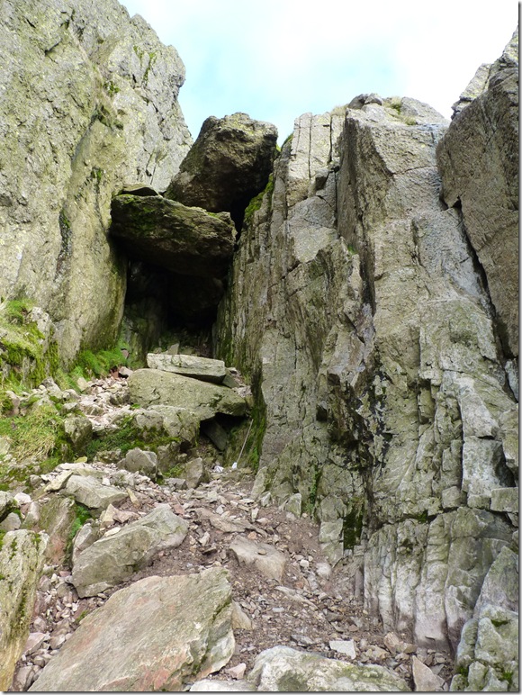 West of the summit lies a cairn marking ‘The Alternative Route’ I make for it with the butterflies in my belly still thinking I’m going to negotiate the Bad Step. |