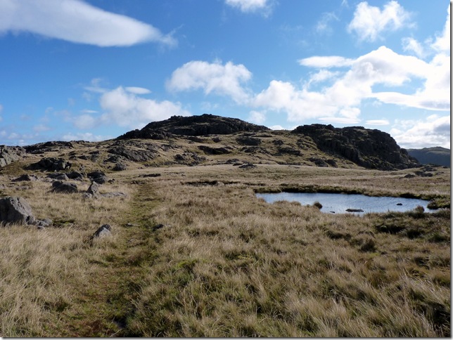 I made my way over to the path that flanks the right side of Red Tarn, It was here in clearer conditions I realised my mistake from that cloud induced day of 10th July 10, I simply couldn’t see this path I am now on, given the fact in great conditions such as today it is still difficult to spot, my advice is; if you are making an ascent on Cold Pike from Red Tarn, if you have reached the Tarn, then you have gone too far, backup about 30 yards until you see a gathering of large boulders to the left of the path & head in a westerly direction. |