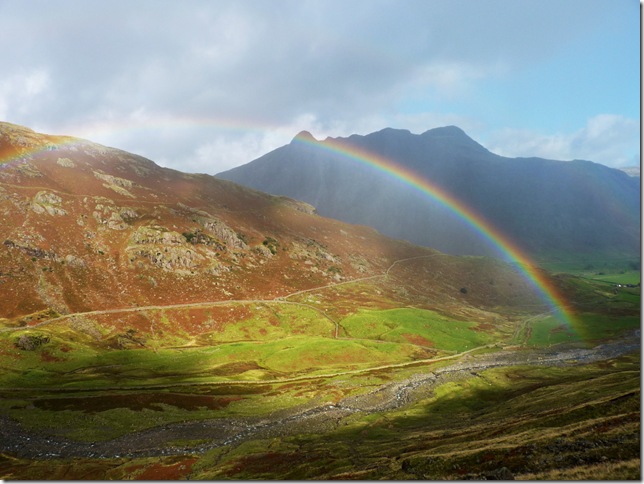Looking back up at Crinkle Crags from Oxendale Beck after a recent rain shower.
