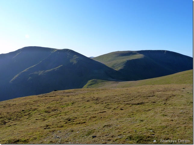 My first glimpse of Grisedale Pike from Kin, to the left of the picture is Eel Crag (Crag Hill) & Sail. The two walkers who set off before me are way ahead & seem out of sight, but I do see movement every now & again. |