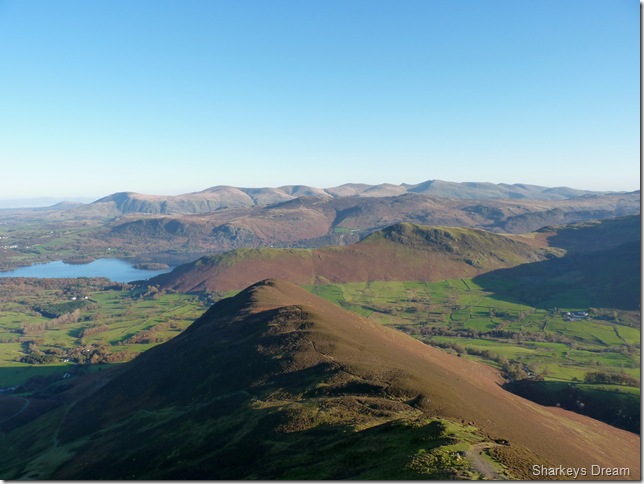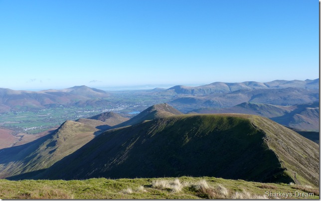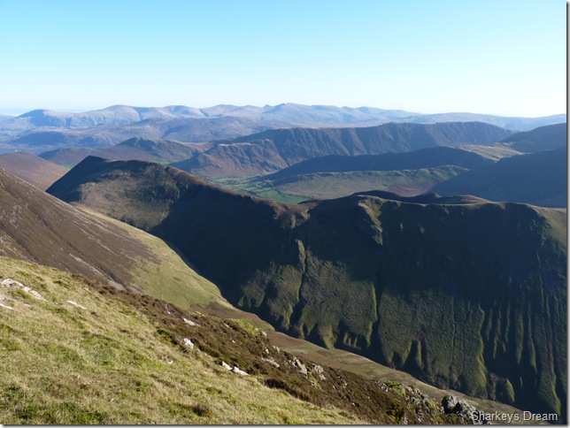 Looking towards Rowling End, Dewent Water & Cat Bells & a whole host of north eastern fells. My ridge walk was almost over as I scramble down the crags & bid a farewell to my accomplice over my last two ridges, I head down the left flank of Rowling End deep in the shadows of Coledale. |