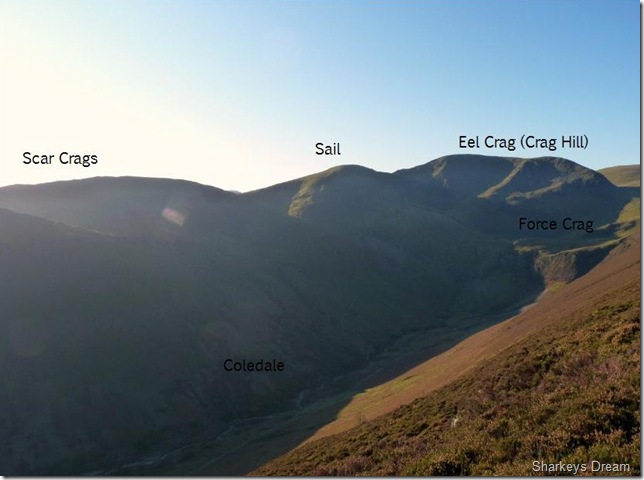 Eel Crag (Crag Hill) & Sail from Wandope summit. |