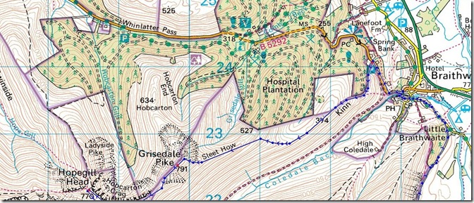 Braithwaite, Kin, Sleet How, Grisedale Pike, Hopegill Head, Coledale Hause, Grasmore, Wandope, Eel Cragl (Crag Hill), Sail, Scar Crags, Causey Pike, Rowling End, Uzzicar, Braithwaite |