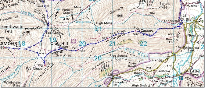My ridge route from Eel Crag (Crag Hill) ahead keeping with the ridge line I have my final four fells, there’s a little scramble to be had as I make my way on to Sail, then I take on the newly contracted much hyped about zig-zag path & a little depression that will lead me on to Scar Crags, then its a classic ridge walk all the way over to Causey Pike, this is all a good couple of hours away so I best get a move on!