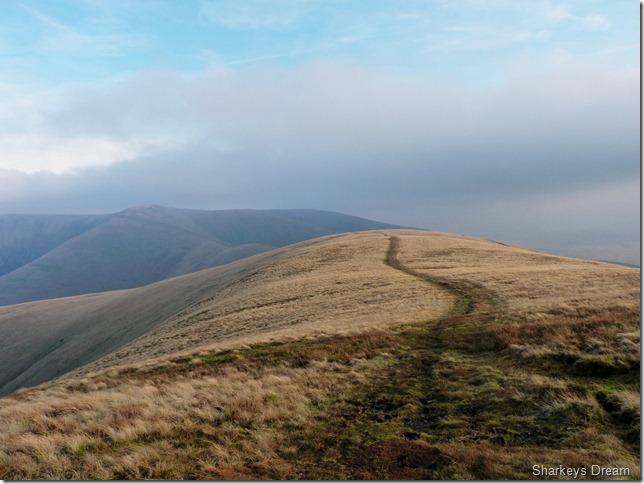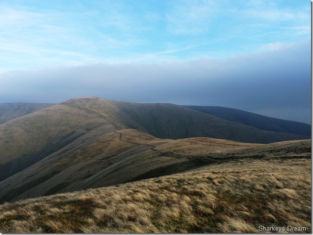 This particular section, & indeed much the whole of today’s route, was chosen because of these semi connecting ridges with each fell, this really is my kind of walk, I just wish right now the ever strengthening gales weren’t taking my mind off things… |