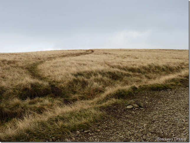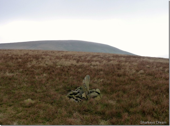 A stone Cairn marks the spot as I leave the main path & head for Bram Rigg Top summit. |
