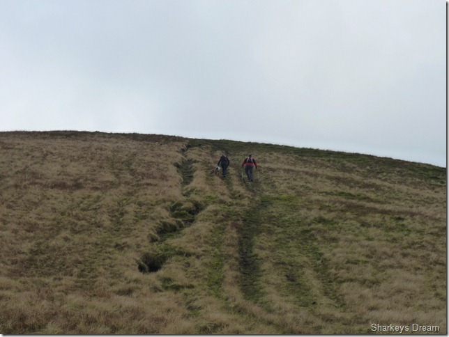 Its a tough o’l slog up the steep grassy paths, as I reached the top of the cobbled lane I had two choices, one was to stick to what looked like a more well worn grassy path to my right, or do as my map says & take the notably, not as well worn path to the left, this I go with & soon pick up a cut path in between the dying bracken.