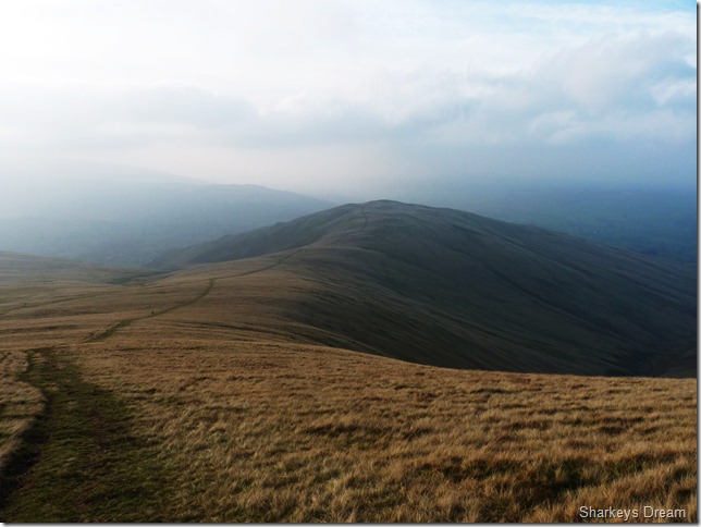 With a spirit boost I now head for Bram Rigg Top seen (C) I figured in Lakeland, that here you would see a small cut across the ridge top, but not here, this just goes to show the huge comparison of walkers that trample the lovely Howgill Fells compared to the vast amount that walk the fells in Lakeland.
