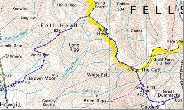 7, Winder, Arant Haw, Calders, Great Dummacks, Bram Rigg Top, The Calf, Fell Head. |