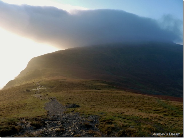 Taken just before I re-join the main path is this shot of rolling cloud rolling in over the head of the Newlands valley, the fell to the right of the shot is Hindscarth. |