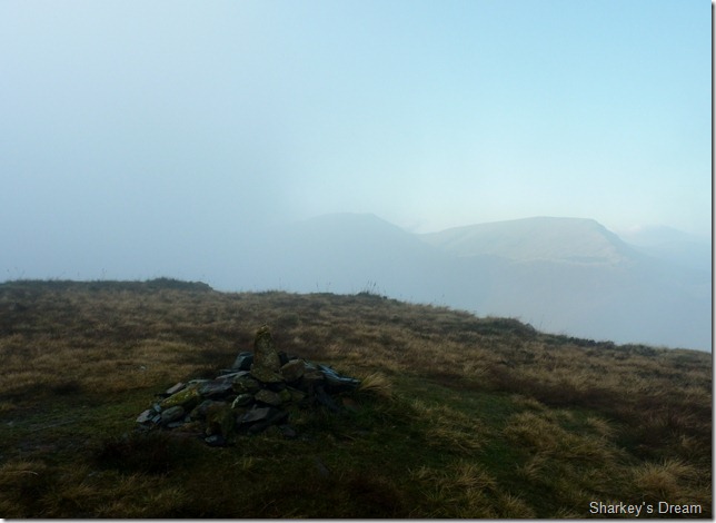 Its been a lonely o’l walk from Cat Bells to Maiden Moor’s summit, this being present by a low mist, as I earlier photographed, clung to the fell side. One can always collect ones thoughts when walking in low mist, there are feelings of at one with the fells now the years collect, and that feeling while walking in mist with not a breath of panic nor a glance at the GPS is priceless.