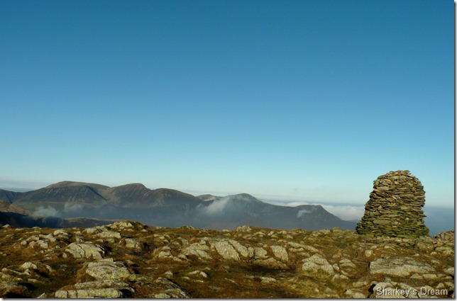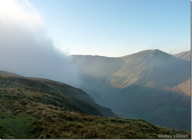 The north westerly fells equally under siege from the inversion, the two peaks to the right are that of Robinson & the High Stile Ridge. |