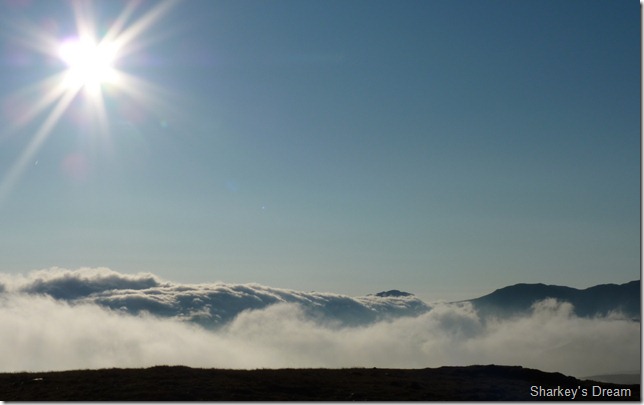 I take shot after shot of the cloud inversion as I now head for High Spy’s summit beacon, I cannot believe my luck that I have now seen two cloud inversions in as many weeks. |