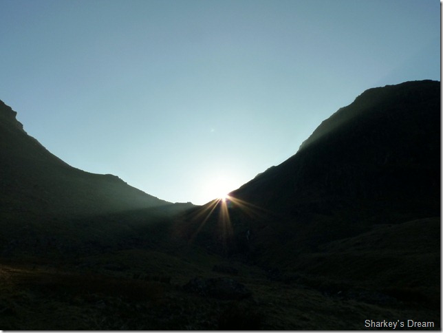Looking back at the sun breached col from the footpath. |