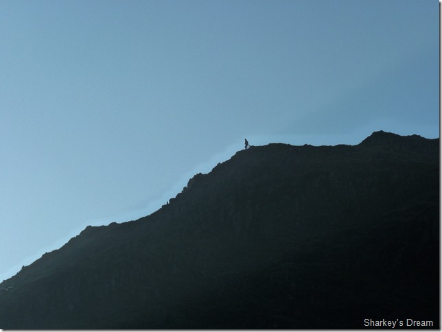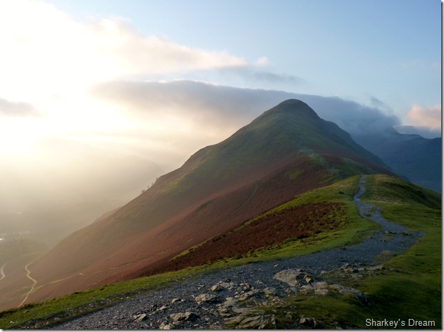 All the while on my descent I hear the tune of whistles & yeps, it was only when I turn around & catch a silhouette of a farmer & sheep dogs starting a descent via Dale Head Crags, I get an under arm wave from the Farmers staff, I over arm-one wave back & think, thoughtful…very thoughtful. |