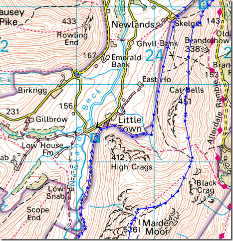 Gutherscale – Cat Bells – Maiden Moor – High Spy – Dalehead Tarn –Newlands Beck – Little Town – Gutherscale |