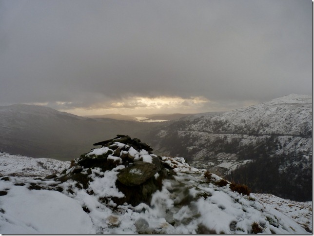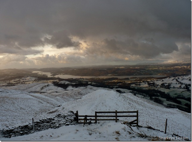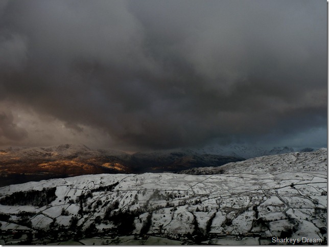 Looking down after the storm had passed at a full length view of Windermere & south Lakeland. |