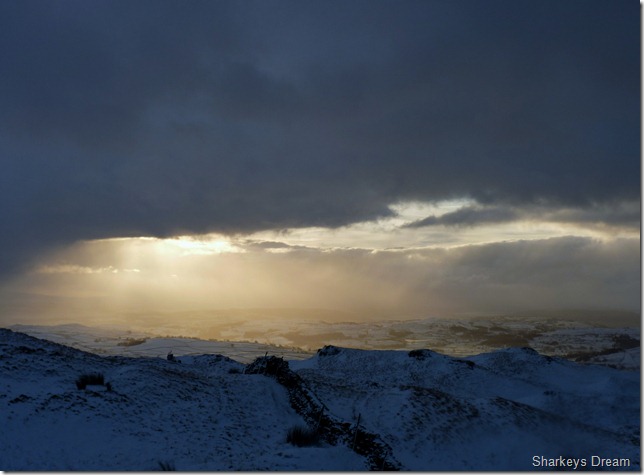 Looking towards Dubs Reservoir & keeping an eye on the weather, the light all around is really menacing & beautiful at the same time. |