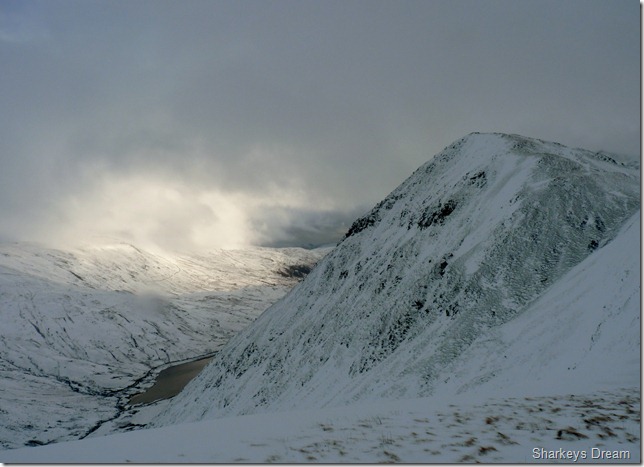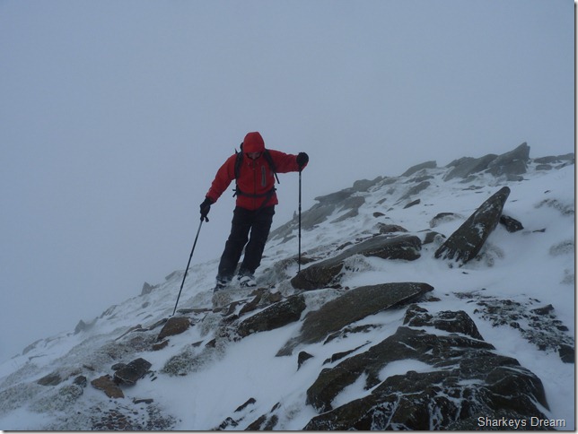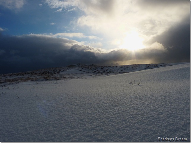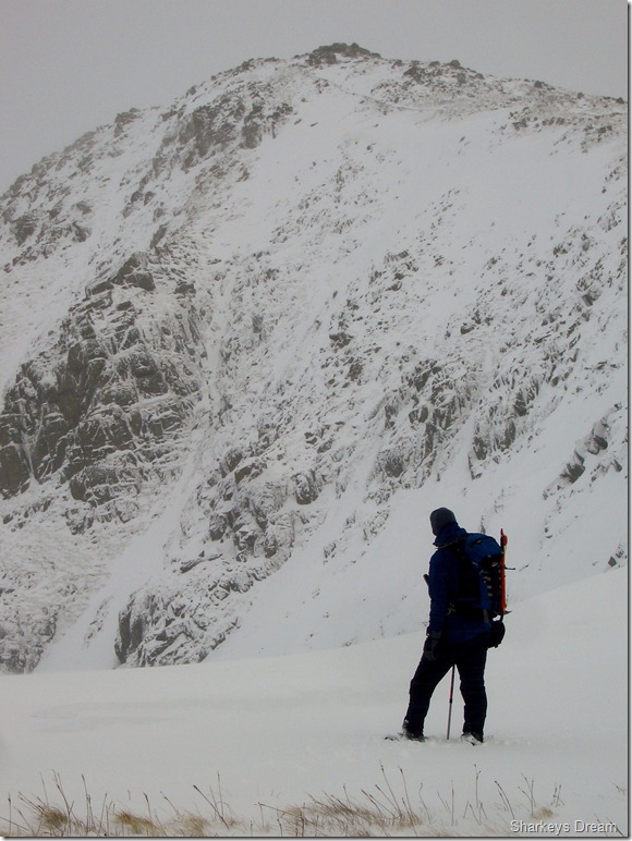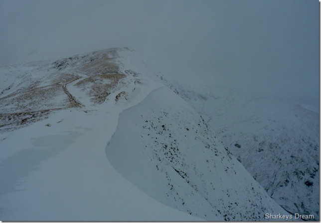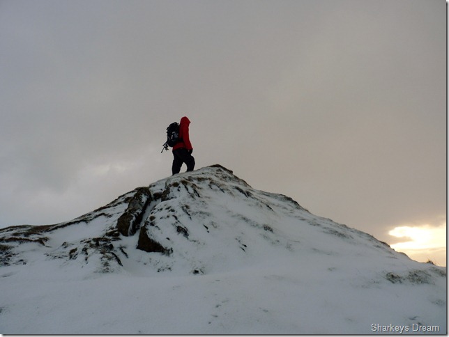 The descent here can be a little tricky in the best of weathers, as the snow wasn’t compact & still quite powdery, I felt it just wasn’t right for the Crampons just yet, but I wouldn’t of thought any a less if I had seen someone wearing them along this ridge. |