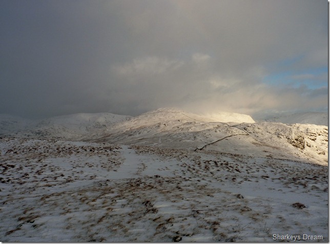 As we leave the summit of Sour Howes we get this clear view of our route ahead. The walk over to Sallows was possibly up there with the best part of the days walking, the ground underfoot was a crisp virgin powdery snow as we make for the stone wall that hugs the path all the way to the summit of Sallows, we both agreed that if the cloud was to come down now that we had both been lucky enough to capture Lakeland both physically & emotionally at her rawest. |