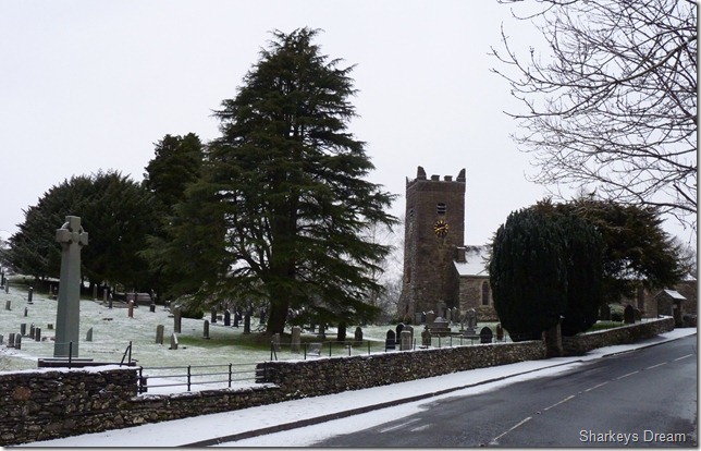 Tim heads off leaving me to lock the car, I shoulder pack realising my car keys are still in my pocket & not in my pack where they should be, I unclip my pack again making sure I don’t lie it on the ground covered in wet snow, I re-shoulder & walk away from the car only to notice my stylus pen isn’t looped in my chest strap (I always use a stylus pen together with my GPS) I lose these quite often so I’m thinking it must of worked its way loose & is still in the boot, off with the pack again & by now I note Tim is a couple of hundred feet away taking snaps of the Church & generally waiting for me to get a move on. Again I hold my pack aloft searching for the car keys & unlock the car & find my stylus pen in the boot, right, third time lucky, lock the car, don the hat & the gloves, I scoff a couple of Fruit Pastels & make my way over to Tim. |
