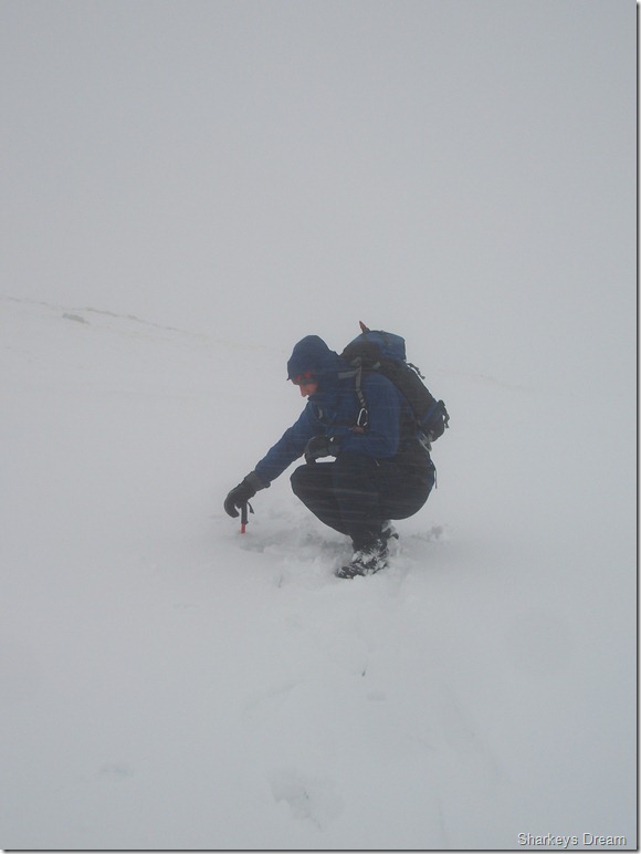 Is exactly what I nearly just did, from memory I think there are two culverts that run along the path here, I miss judge the path as my pole is swallowed up by the deep snow drift. |