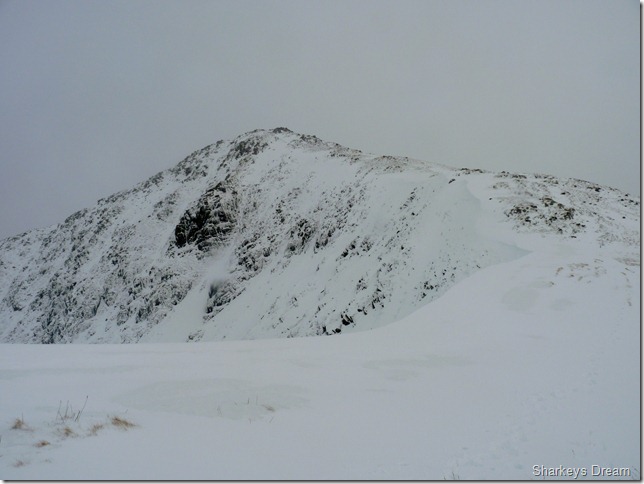 Trudging through the deep snow when Thornthwaite Beacon comes into view.