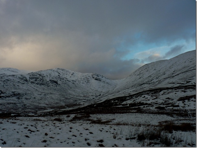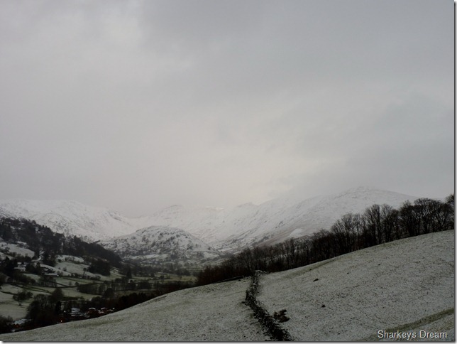 Its a long way back to Troutbeck & the CP, just over two & half miles to be exact, after leaving the summit we slip (well I do) most of the way down the grassy slopes now covered in deadly mix of wet grass, slush & snow, I fail at trying to look somewhat athletic as the now five times that I‘ve literally gone head over heels down the hill side, I am met with “Paul, you ok mate?” to silence or fits of laughter! your head twisted right back then! I guess as comical as I may have looked, after a full days walking in whatever was thrown at me, it was the little fell of Troutbeck that saw me on my cold arse!