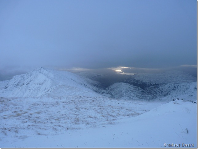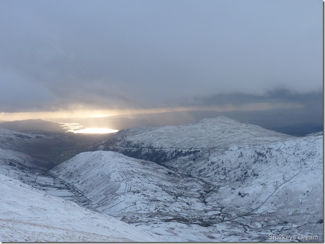 With Windermere goring at us like a sparkling pot of gold we make no haste in descending down into Troutbeck, it almost feels like dusk is up on us, indeed It may well be, yet it is only 2pm in the afternoon, the descent is met by more deep snow as strange as it may seem, it is only as we reach the valley of Troutbeck does the snow become scarce underfoot. |
