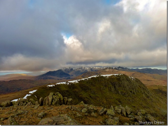 Looking back on Wetherlam from just beneath the summit of Coniston Old Man. |