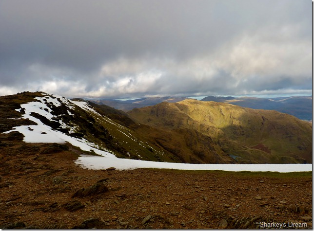 Towards the left of the picture is the valley of Red Dell, ahead is the Coppermines & Coniston. |