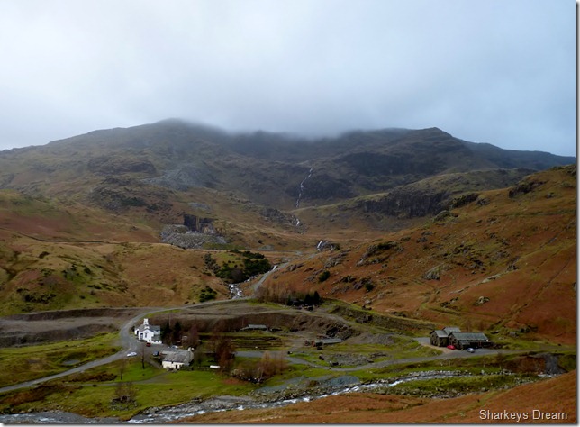 The Coppermines valley with Coniston Old Man’s summit under a blanket of cloud.