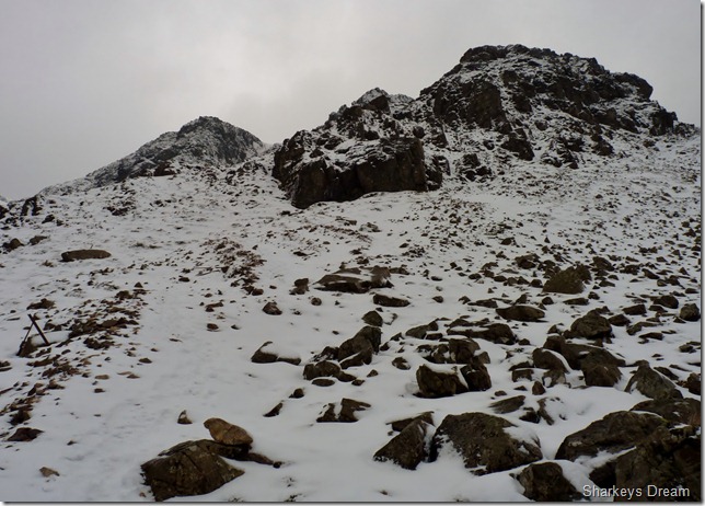 Eyes are on Pillar for much of the duration before sharply turning right for the top of Black Sail Pass just after the stone wall you see in the photo. |